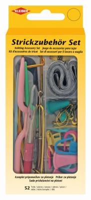 The Kleiber knitting accessories set consists of 52 pieces, all neatly stored in a small plastic box. The box contains everything you need for knitting and needlework. The small box even fits in every pocket so you always have your knitting supplies with you.