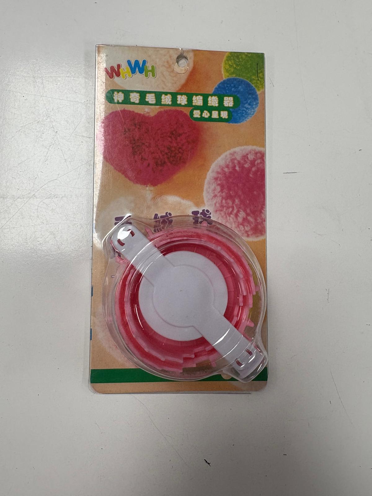 In the next step, both halves are combined by the connecting pegs and the wool is cut along the groove between the ring panels. Finally, a wool thread is tightened in the groove, knotted, and the ring is removed. A few trims are done for that finishing touch, and the pompom is finished.