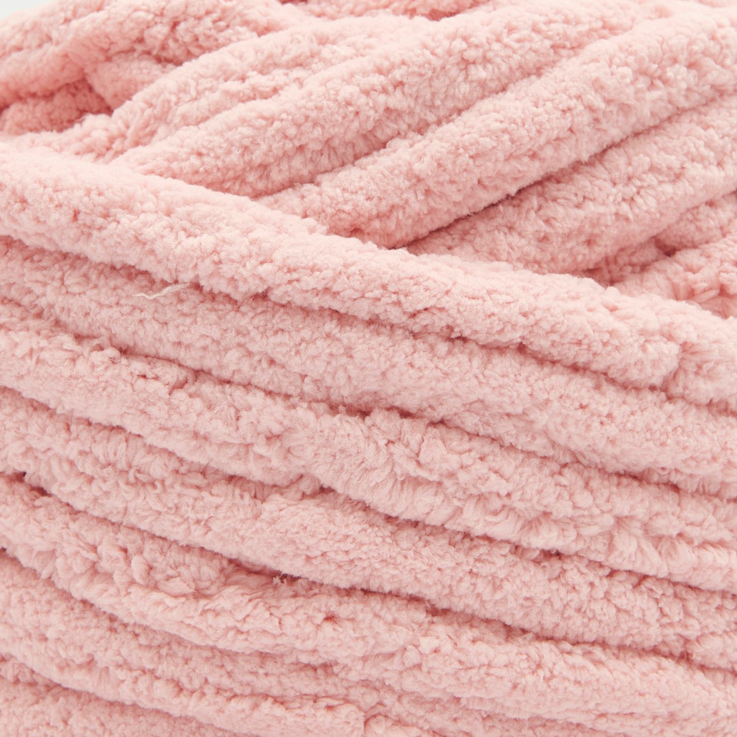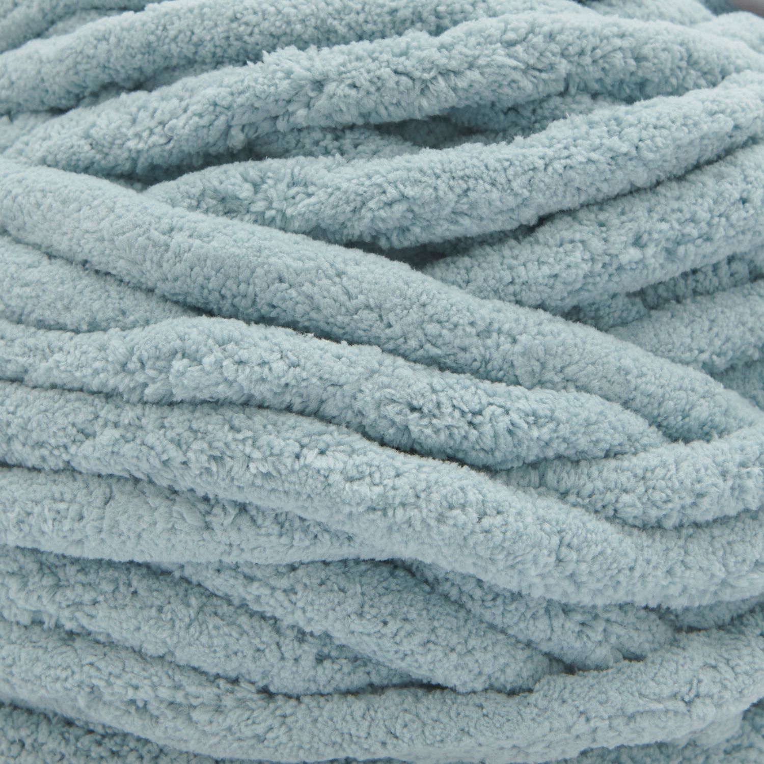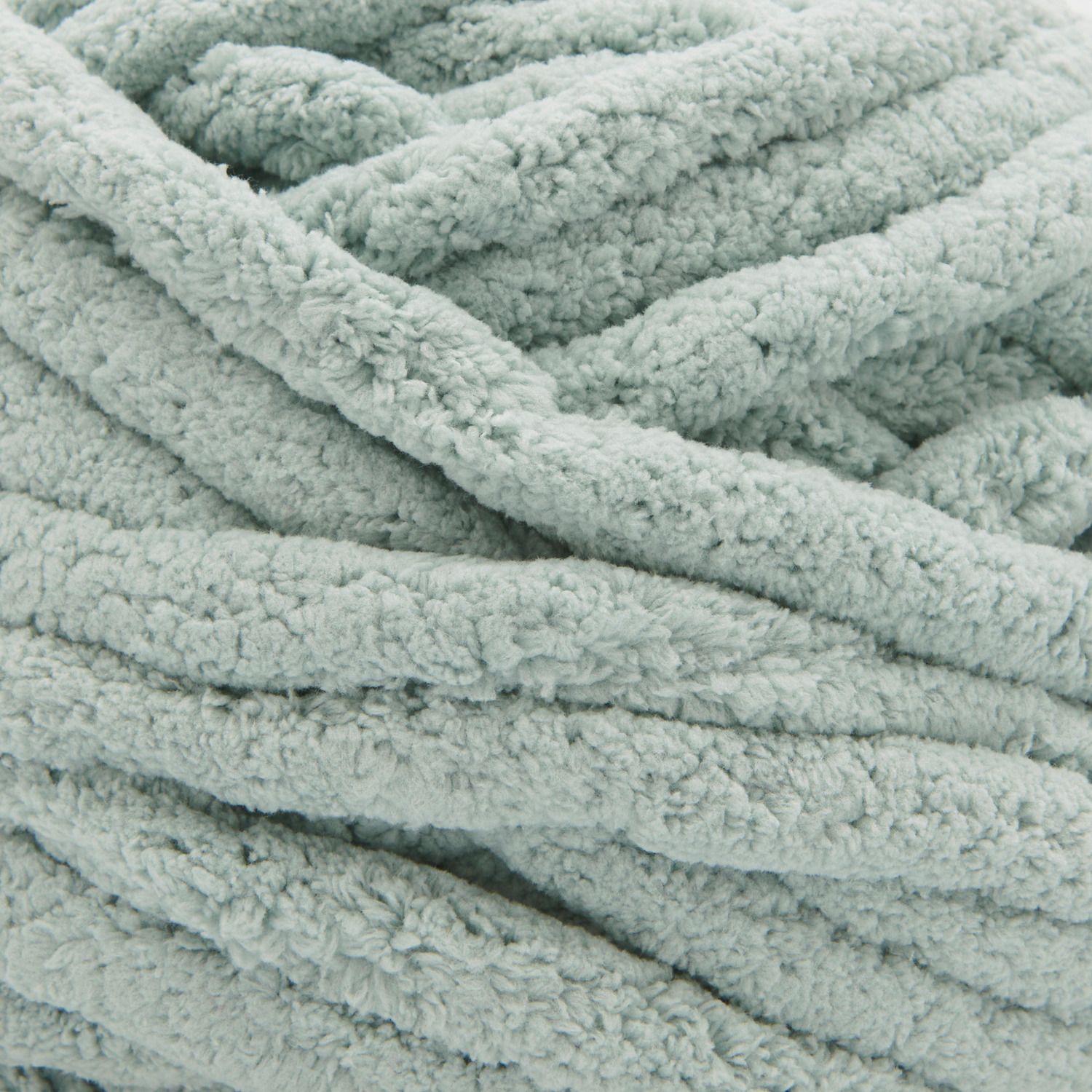 Creative Chenillove Super Big is a super-thick chenille yarn made from 100% polyester. It can be worked either with a particularly thick needle (25 mm) or with your fingers. This cosy quality is ideal for Home accessories such as blankets, cushions or baskets. The latter require more stability, so it is better to crochet for these and knit the blankets. There are instructions for a soft blanket on the sleeve.