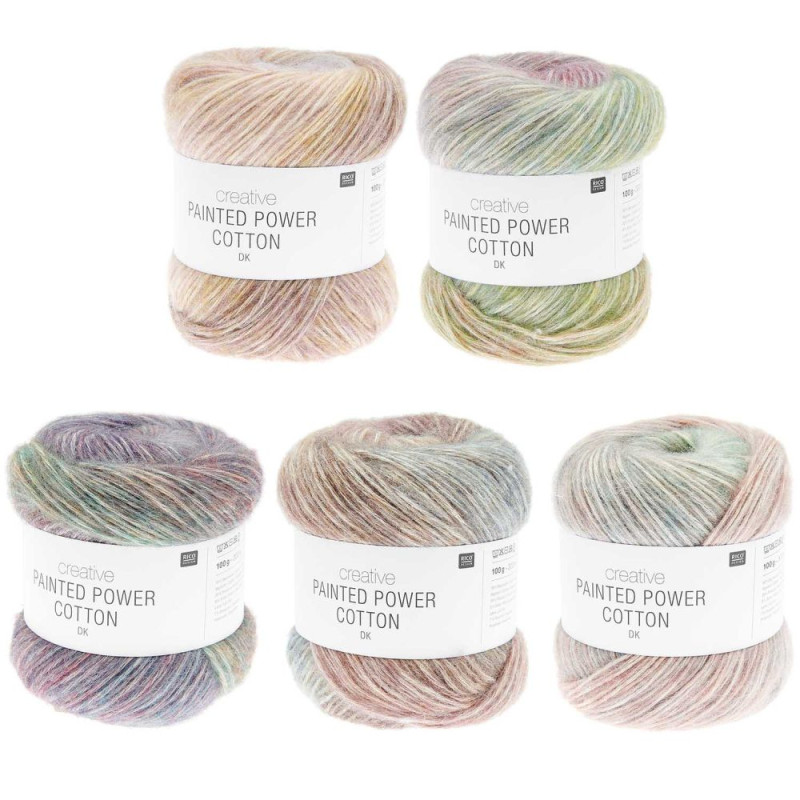 Creative Painted Power Cotton dk is the summery cotton version of the popular winter yarn. The colourful print flows together in soft stripes and creates a harmonious interplay of colours. With its light elasticity and pleasantly fluffy thread, the yarn is easy to work with and creates an even, attractive stitch pattern.