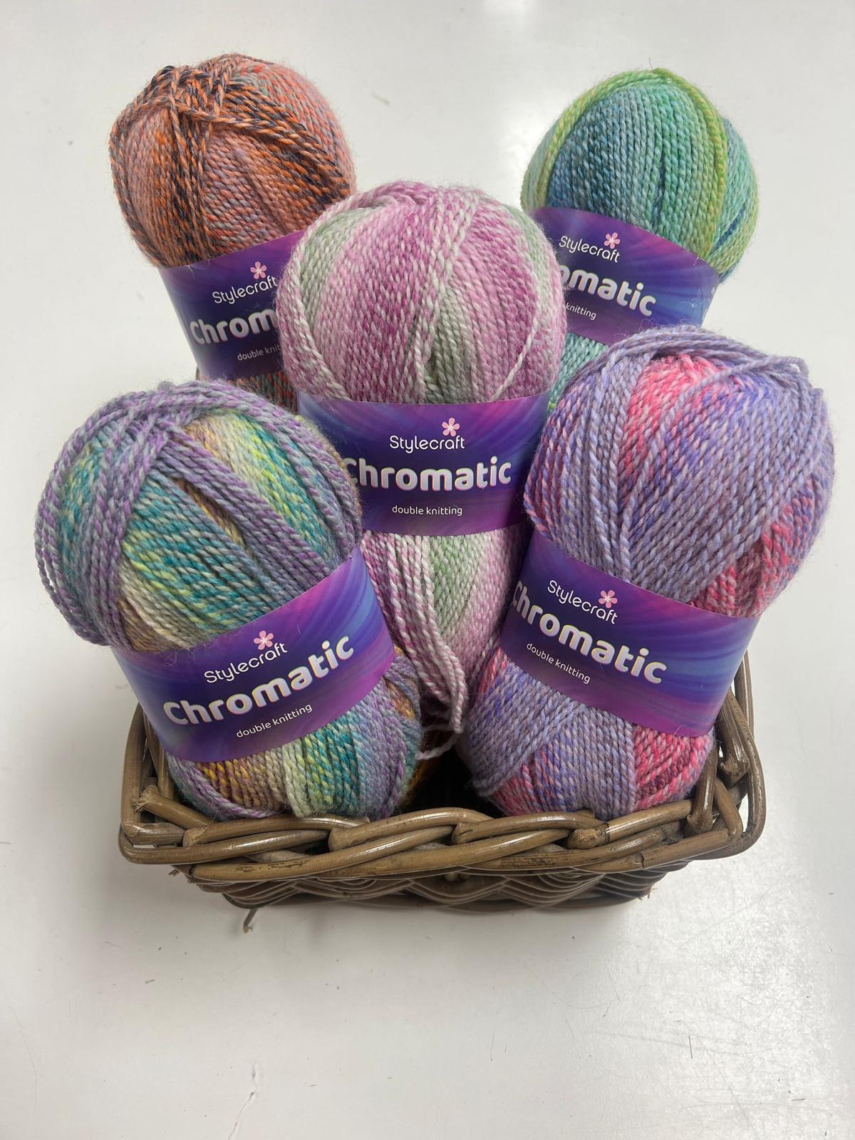 Experience the magic of hazy colour transitions with Chromatic, our vibrant new DK yarn crafted from a blend of acrylic and wool.